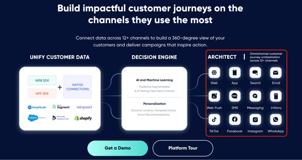 - Increasing engagement, conversions, and revenue by automatically personalizing every customer touchpoint, including their websites, mobile apps, email, SMS, WhatsApp, push notifications, and more.
