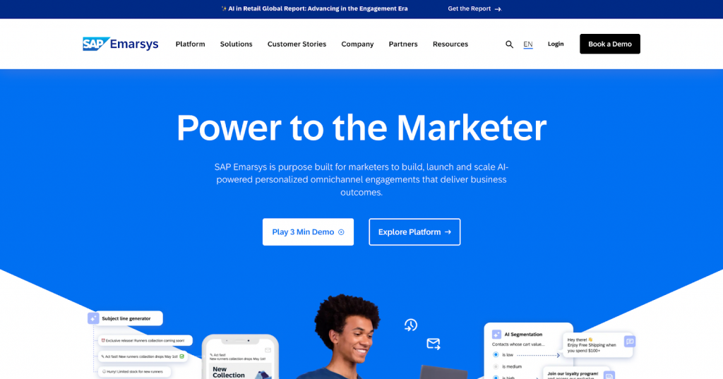 Marketers in fast-growing ecommerce or retail sectors that need scalable, AI-enhanced omnichannel automation with deep personalization and loyalty features. If the budget is less restrictive and you want advanced AI-driven engagement, Emarsys is a good choice.
