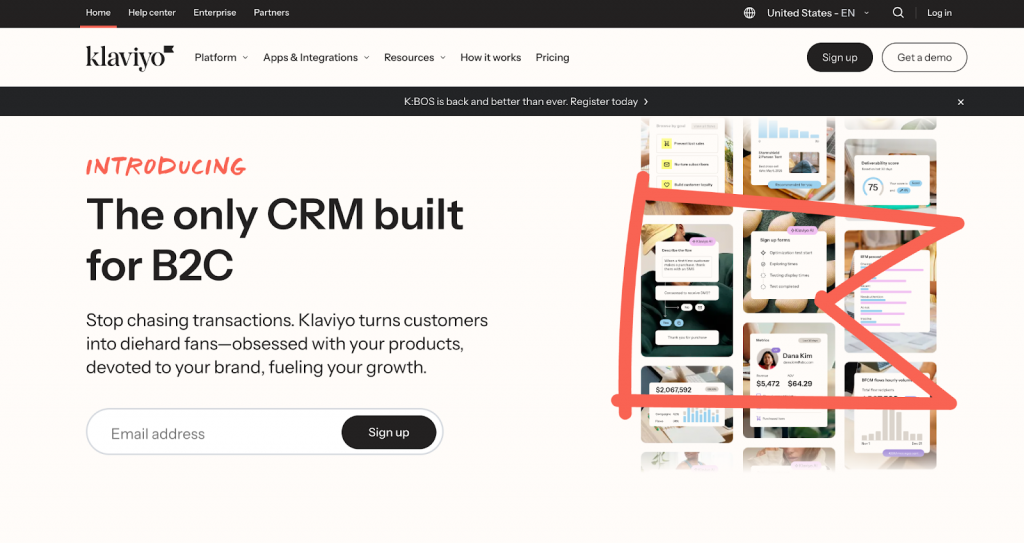Klaviyo positions itself as a premium marketing automation and B2C CRM platform, particularly favored by ecommerce businesses and consumer brands striving for personalized, data-driven marketing at scale. It combines email, SMS (available in select countries), and push notifications within a unified automation and analytics framework.
