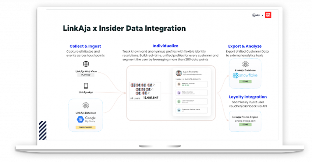 By implementing Insider’s Customer Data Platform (CDP) and Predictive Audience tools, LinkAja unified customer data from various sources into a single, actionable view. This eliminated manual processes and enabled real-time segmentation. With a holistic understanding of each user, LinkAja could launch highly targeted, personalized marketing campaigns that resonated with their audience and drove engagement at scale.